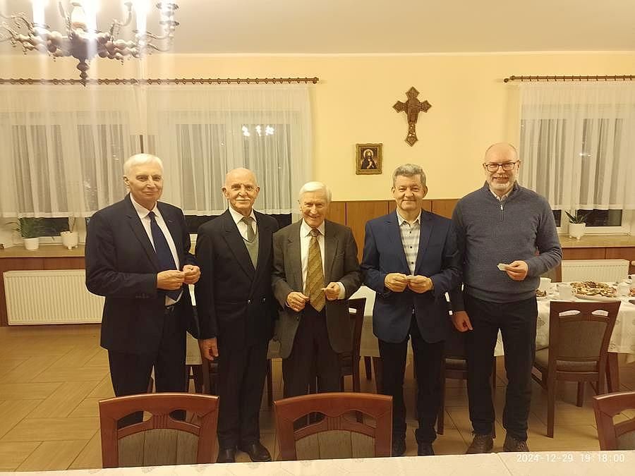 W dniu 29 grudnia 2024 r. tuż po połączonym spotkaniu opłatkowym Wspólnot Krwi Chrystusa oraz Żywego Różańca, wieczorową porą spotkała się Wspólnota Nadzwyczajnych Szafarzy Komunii Świętej 'odkupiciela' oraz Sławomir Aleksandrowicz, nasz pan kościelny aby przełamać się opłatkiem i złożyć wzajemnie życzenia w obecności i z udziałem ks. kan. Krzysztofa Lisa, proboszcza oraz dk. Artura Rozalewskiego. Moc wzajemnych życzeń, dobra kawa i świąteczne wypieki oraz wspólne rozmowy w radosnej atmosferze Świąt Bożego Narodzenia. Brakowało tylko p. Radosława Rzepeckiego, który przebywa w Wilnie na Litwie.