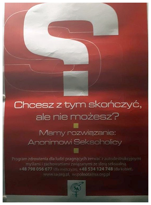 7. Informacje o programie zdrowienia dla ludzi pragnących zerwać z autodestrukcyjnymi myślami i zachowaniami związanymi ze sferą seksualną, w ramach Wspólnoty Anonimowych Seksoholików, są umieszczone na plakacie na tablicy ogłoszeń.